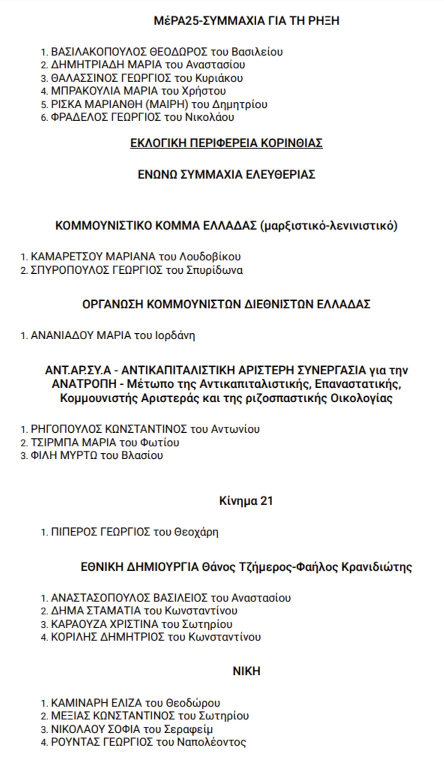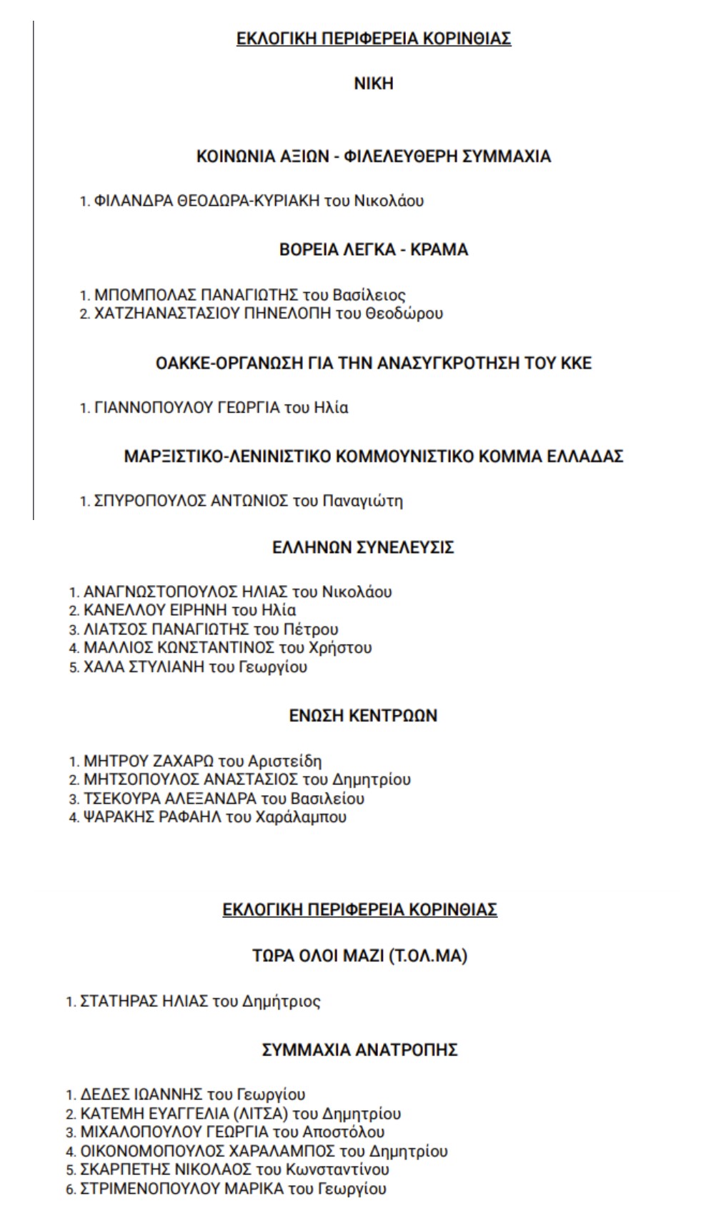 Οι 81 υποψήφιοι των 27 κομμάτων στην Κορινθία – Όλα τα ονόματα εδώ