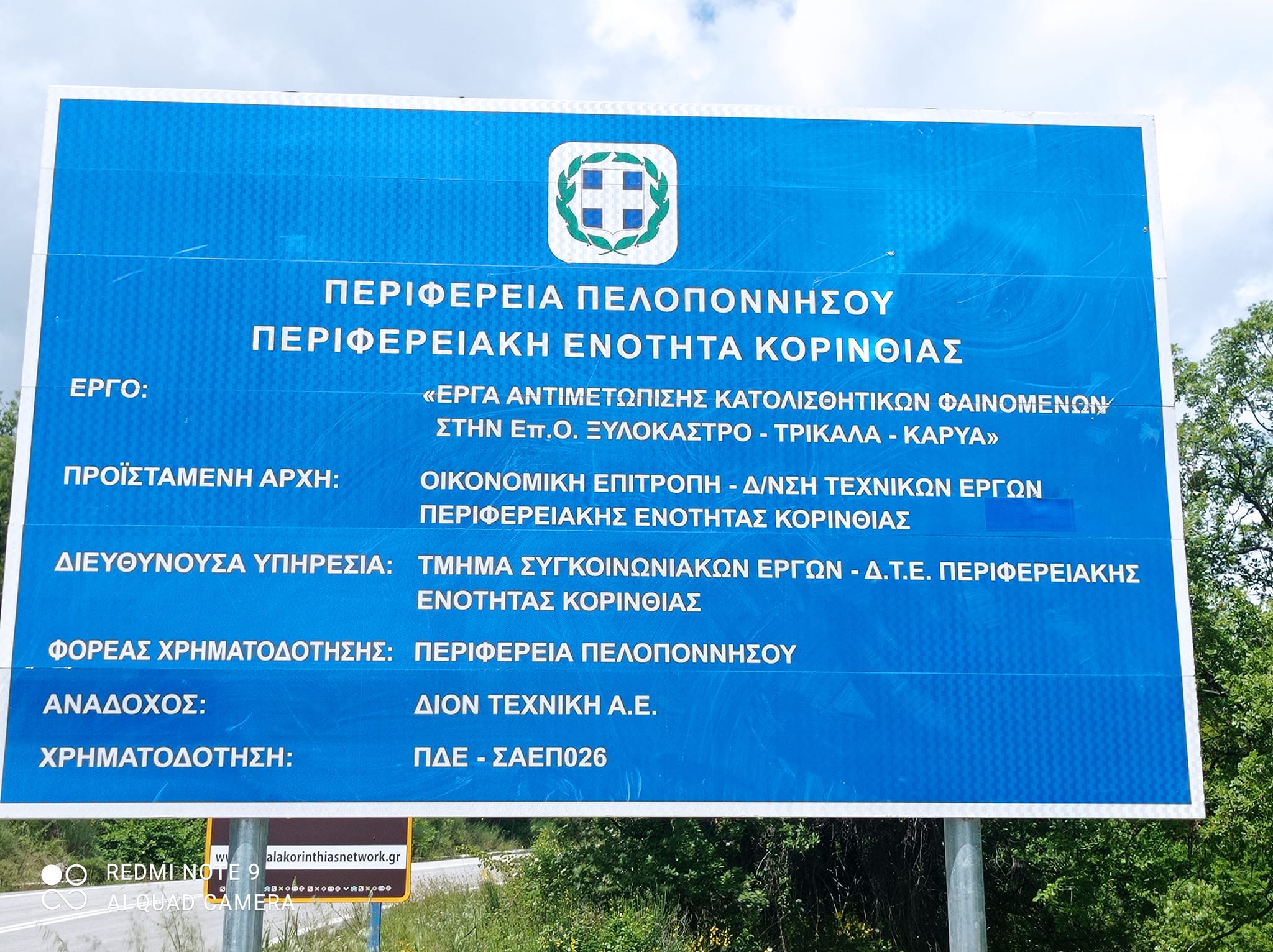 Σε εξέλιξη βρίσκεται η εργολαβία της Περιφέρειας Πελοποννήσου για την αντιμετώπιση κατολισθητικών φαινομένων στην επαρχιακή οδό Ξυλόκαστρο – Τρίκαλα – Καρυά, στο οποίο διενήργησε αυτοψία ο αντιπεριφερειάρχης Κορινθίας Χάρης Βυτινιώτης.
