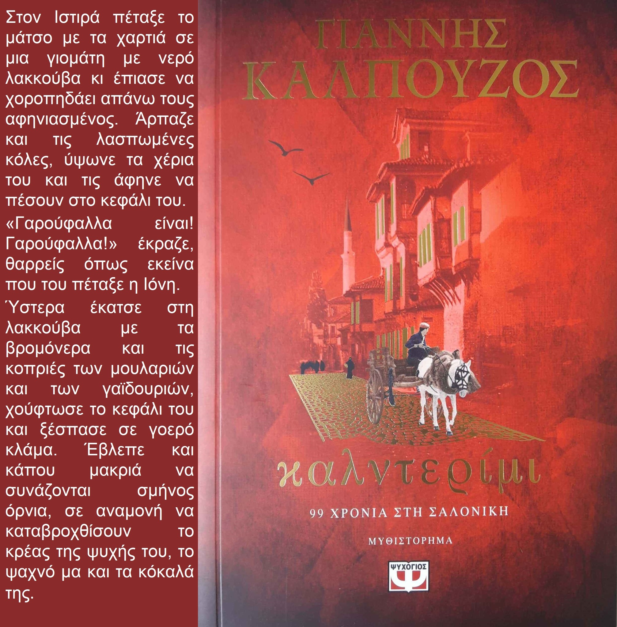 Για τρίτη φορά ο Πολιτιστικός Σύλλογος Ηπειρωτών Κορινθίας η Πίνδος και το βιβλιοπωλείο ” ΚΙΒΩΤΟΣ ” καλωσορίζουν στην Κόρινθο τον σπουδαίο Έλληνα λογοτέχνη Γιάννη Καλπούζο, οδοιπορώντας αυτή τη φορά στο “ΚΑΛΝΤΕΡΙΜΙ” του. Η παρουσίαση του βιβλίου του θα γίνει στο Θέατρο του Δημαρχείου Κορίνθου (Κολιάτσου 32), το Σαββατόβραδο 27/5/23, στις 8.00 μμ.