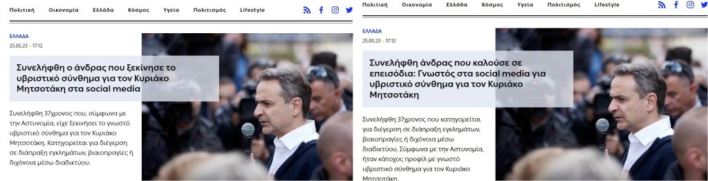 Αξίζει να σημειωθεί, τέλος, πως ορισμένα δημοσιεύματα του Τύπου προχώρησαν σε σχετική διόρθωση του αρχικού τους τίτλου, αποκαθιστώντας τη σύγχυση που προκλήθηκε σε σχέση με τα ακριβή αίτια της σύλληψης του 37χρονου άνδρα. Ενδεικτικά, παραθέτουμε το ακόλουθο παράδειγμα από τον ιστότοπο Reader.gr: