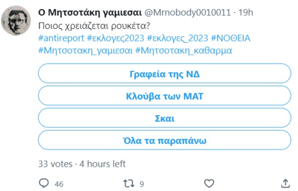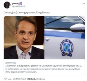 Σύγχυση παρατηρείται σχετικά με τα ακριβή αίτια που οδήγησαν τη Δίωξη Ηλεκτρονικού Εγκλήματος στη σύλληψη ενός 37χρονου χρήστη του Twitter. Στα μέσα κοινωνικής δικτύωσης διαδόθηκε ο ισχυρισμός πως η σύλληψη συνέβη εξαιτίας της διακίνησης, από πλευράς του χρήστη, του γνωστού υβριστικού συνθήματος εναντίον του Κυριάκου Μητσοτάκη. Σε αρκετές περιπτώσεις, μάλιστα, ο χρήστης ταυτίστηκε και με τον εμπνευστή του συγκεκριμένου συνθήματος, κάτι που διαπιστώθηκε ότι αναγράφεται και σε αρκετούς τίτλους δημοσιευμάτων του Τύπου. Στο παρόν άρθρο θα καταδείξουμε τι ακριβώς ισχύει, αποσαφηνίζοντας τα ακριβή αίτια της σύλληψης αλλά και τη σχέση του συγκεκριμένου χρήστη με το επίμαχο σύνθημα.