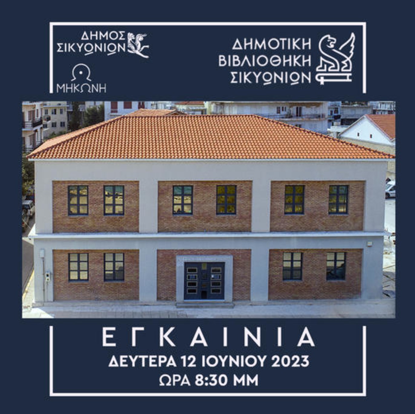 ΕΚΔΗΛΩΣΕΙΣ Εγκαινιάζεται την Δευτέρα 12 Ιουνίου η Δημοτική Βιβλιοθήκη Σικυωνίων By SFEDONA 02/06/2023 ShareTweet 0 Τη Δευτέρα 12 Ιουνίου και ώρα 20:30 εγκαινιάζεται η Δημοτική Βιβλιοθήκη Σικυωνίων.