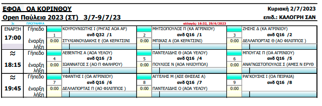 Προγραμμα κυριακης 02/07/23 – Προκριματικα
