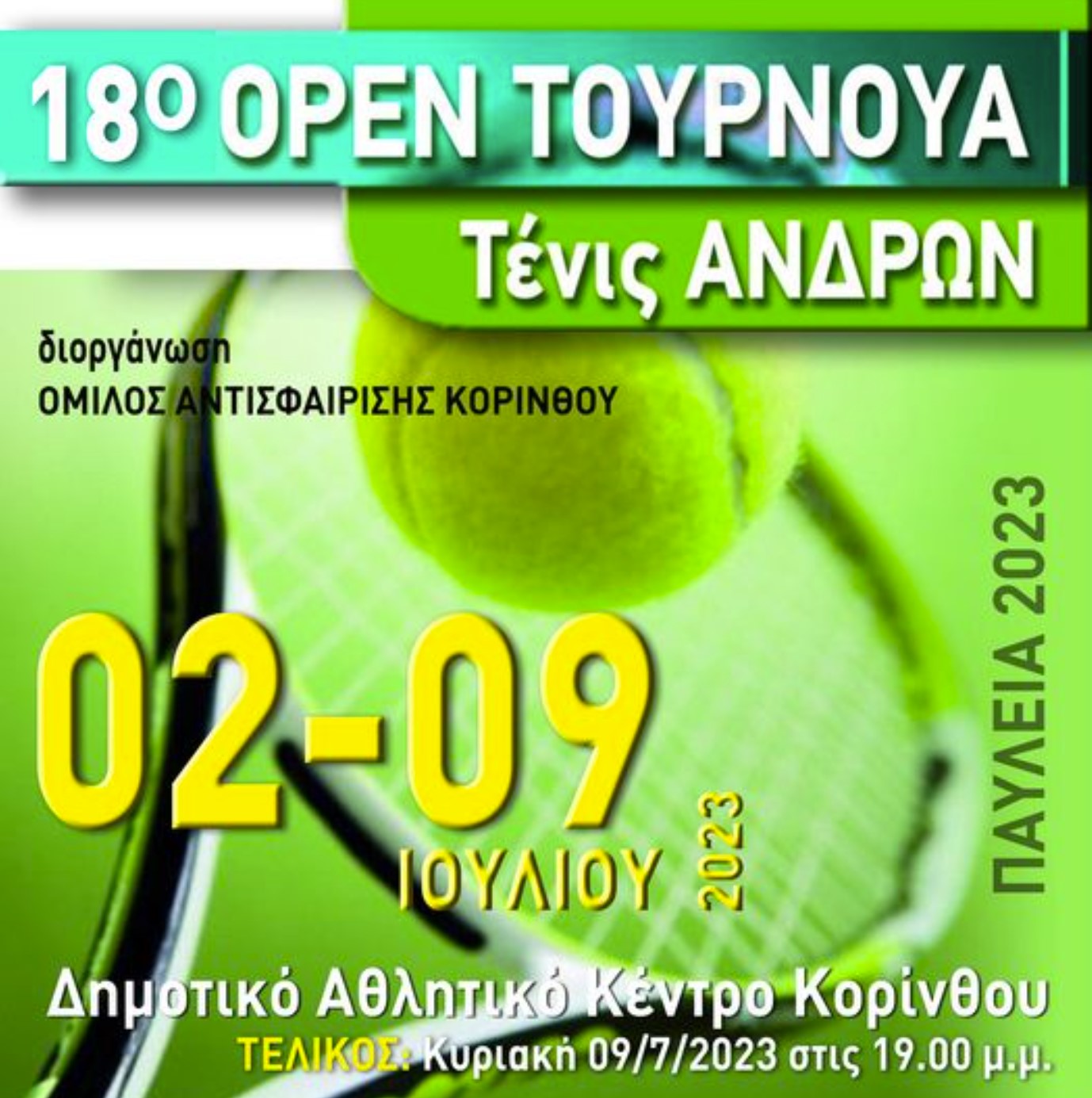 Το 18ο OPEN ΤΟΥΡΝΟΥΑ ΑΝΔΡΩΝ ΠΑΥΛΕΙΑ 2023 που διεξάγεται στην Κόρινθο προς τιμήν του Αποστόλου Παύλου μπαίνει στην τελική ευθεία, λίγες μέρες έμειναν έως την Κυριακή 02/07/2023 όπου θα διεξαχθουν μετά απο πολύ καιρό εννέα αγώνες προκριματικών για την είσοδο στο κυρίως ταμπλό.