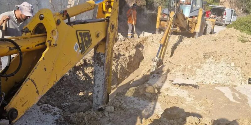 Απο το σημείο των εργασιών για την αποκατάσταση της βλάβης στον κεντρικό αγωγό ύδρευσης, ο Δήμαρχος Κορινθίων Βασίλης Νανόπουλος, δήλωσε :