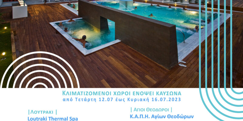 Με προτεραιότητα τη φιλοξενία και την προστασία των ευάλωτων κοινωνικών ομάδων, ο Δήμος Λουτρακίου – Περαχώρας – Αγίων Θεοδώρων θέτει σε λειτουργία τρεις (3) ειδικά διαμορφωμένους κλιματιζόμενους χώρους, ενόψει καύσωνα, με βάση την πρόγνωση της Εθνικής Μετεωρολογικής Υπηρεσίας και τις συστάσεις της Γενικής Γραμματείας Πολιτικής Προστασίας.