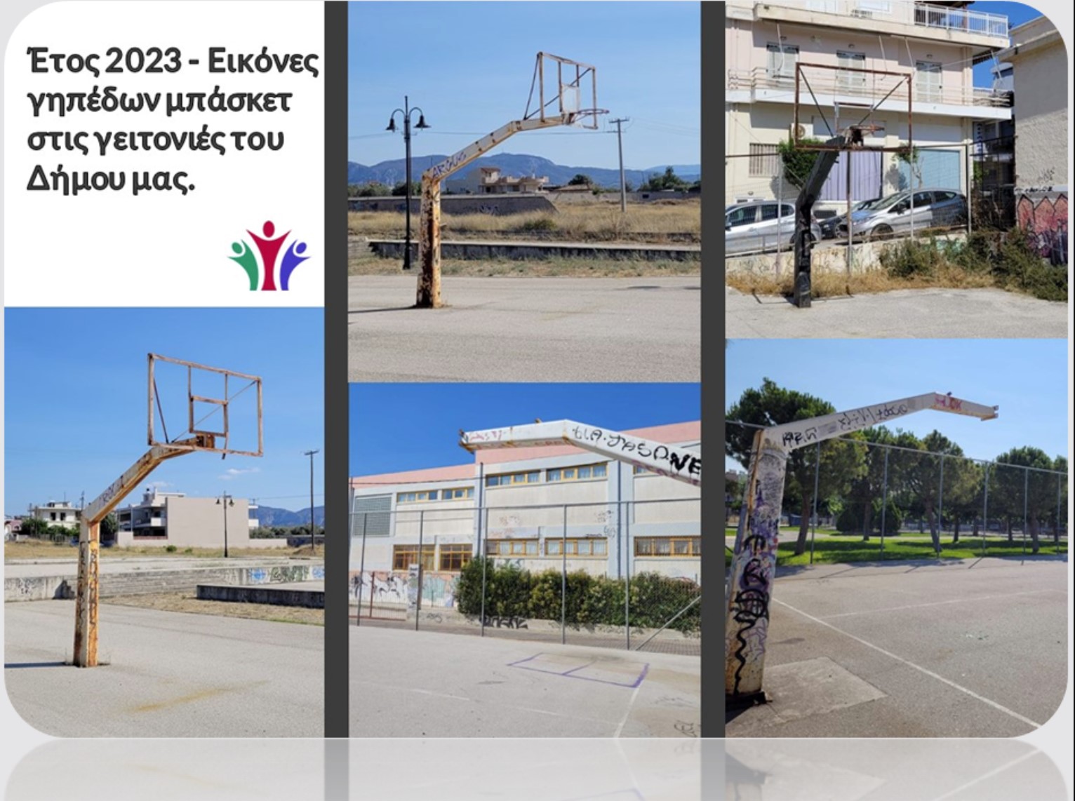 Θέλουμε να ενημερώσουμε τους συνδημότες μας για την τραγικά απαράδεκτη κατάσταση των γηπέδων καλαθοσφαίρισης σε κοινόχρηστους χώρους και να επισημάνουμε:
