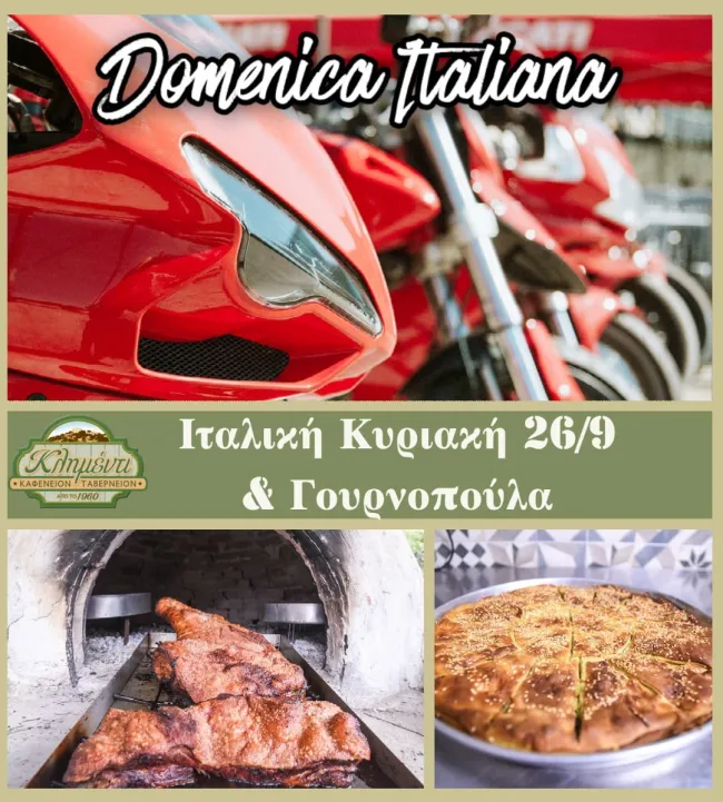 Σε μια εικόνα, ιταλικές μηχανές, γουρνοπούλα και πίττα στον ξυλόφουρνο. Γιατί όχι;