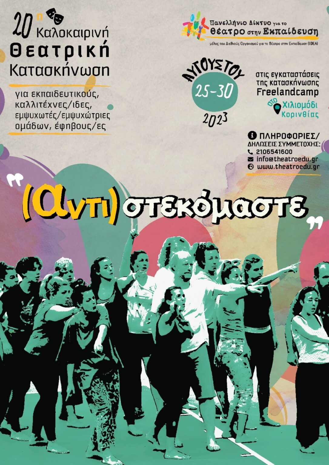 Στις εγκαταστάσεις της κατασκήνωσης freelandcamp, στο Χιλιομόδι της Κορινθίας, πρόκειται να γίνει φέτος, η 20η θεατρική, καλοκαιρινή κατασκήνωση για το πανελλήνιο δίκτυο που αφορά το θέατρο στην εκπαίδευση.
