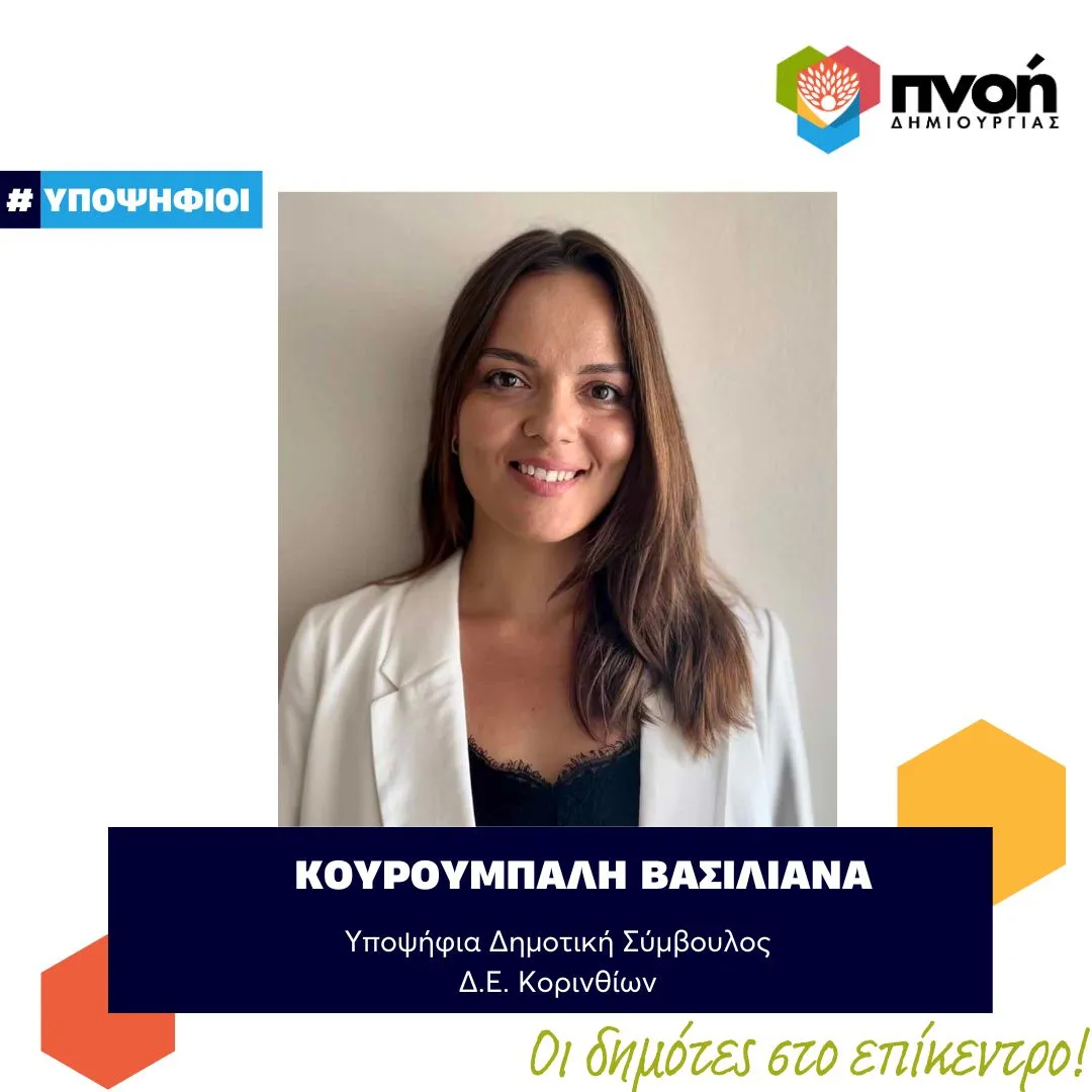 Η Βασιλιάνα είναι υποψήφια δημοτική σύμβουλος Δ.Ε. Κορινθίων.