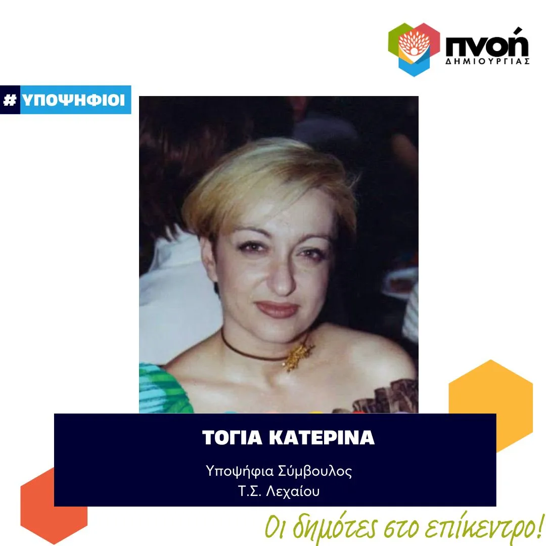 Η Κατερίνα είναι υποψήφια σύμβουλος Τ.Σ. Λεχαίου.
