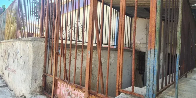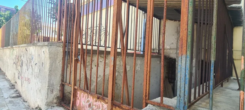 Τα κάγκελα που είναι σκουριασμένα και επικίνδυνα για τραυματισμούς.