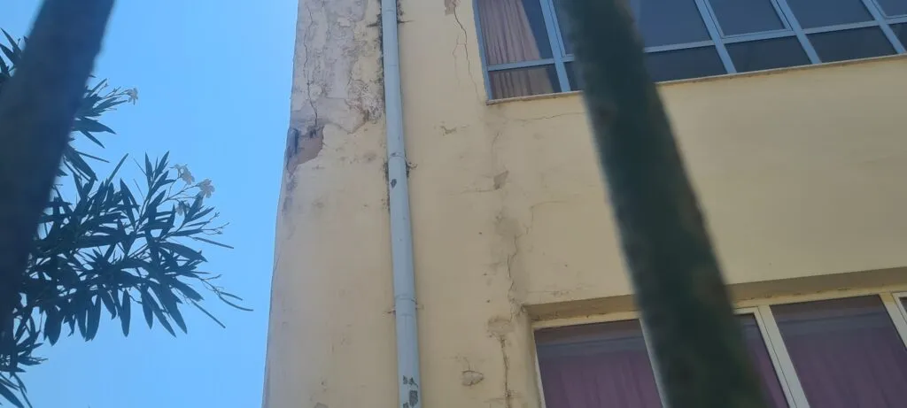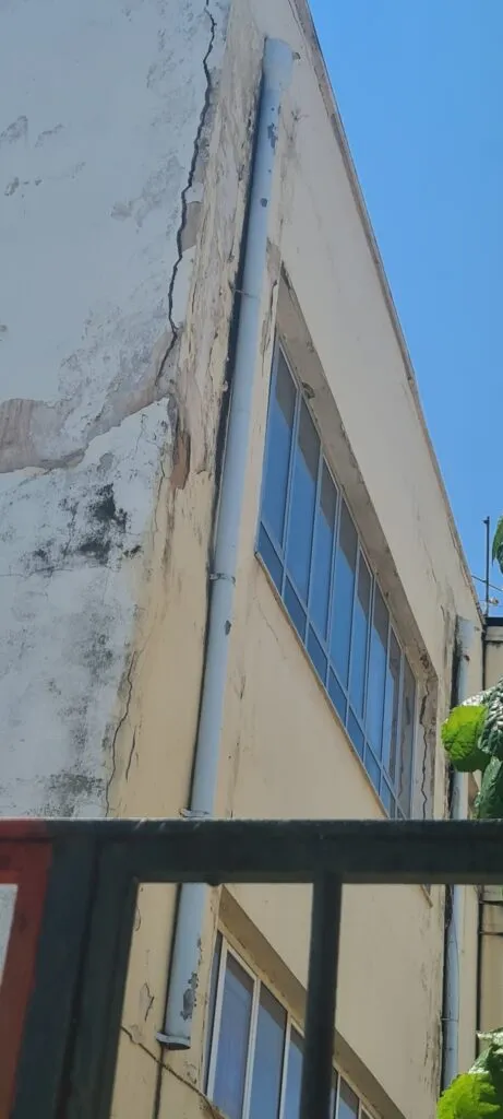 Τα χρώματα που έχουν σκάσει και τους τοίχους που έχουν μουχλιάσει, μία εικόνα τριτοκοσμική για εκπαιδευτήρια.