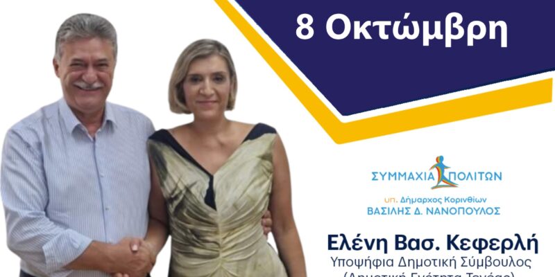 Υποψήφια Δημοτική Σύμβουλος στον συνδυασμό  Συμμαχίας Πολιτών του υπ. Δημάρχου Κορινθίων Βασίλη Δ. Νανόπουλου