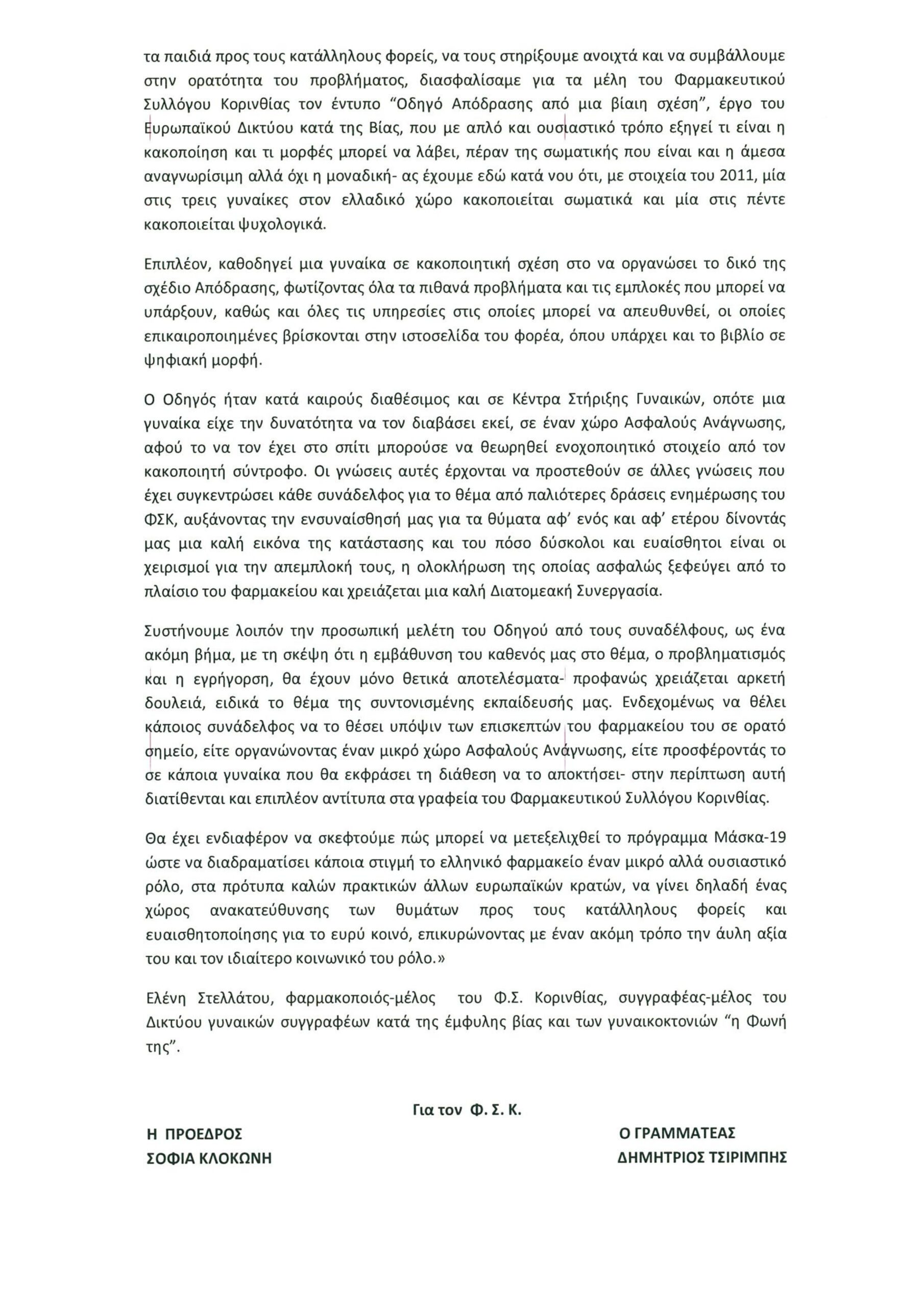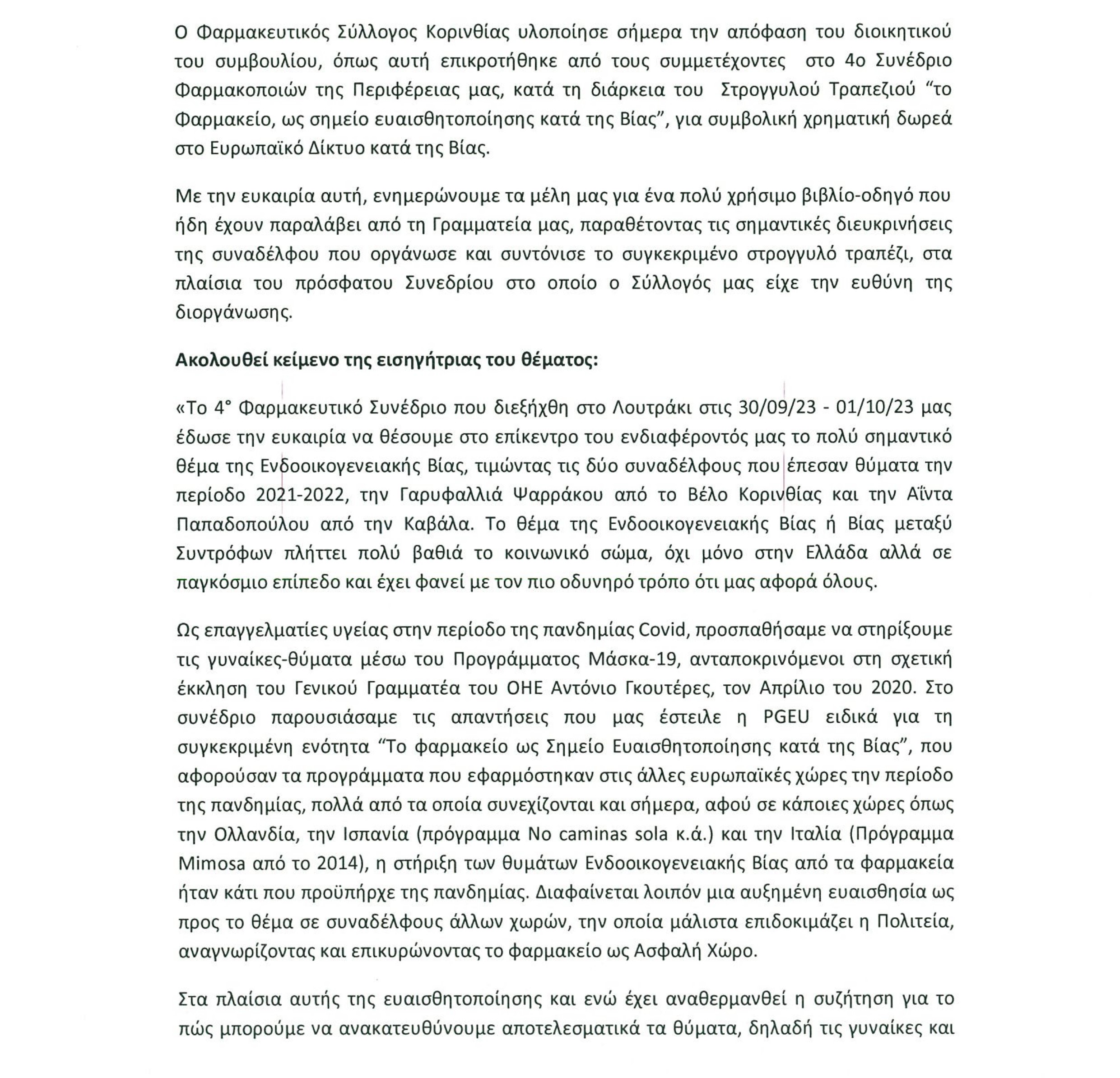 1_ΚΟΡΙΝΘΙΑ4_ΚΟΙΝΩΝΙΑ Ο “Οδηγὁς Απόδρασης από μια βίαιη σχέση” στη διάθεση όλων των φαρμακείων του Φ.Σ.Κ. και μέσω αυτών, στη διάθεση κάθε συνανθρώπου μας που το χρειάζεται By SFEDONA 20/10/2023 ShareTweet 0