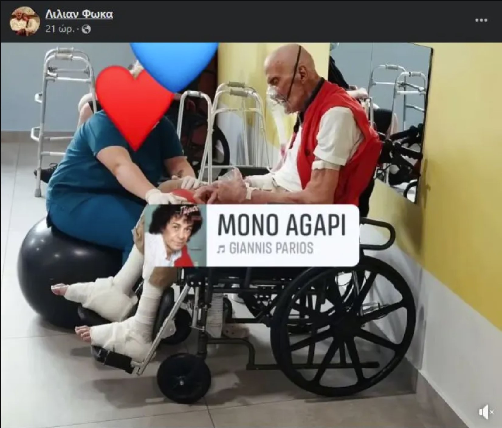 Στο προφίλ της συζύγου του στο facebook, υπάρχει μία φωτογραφία (βλέπε παραπάνω) από το κρεβάτι του θεραπευτηρίου.