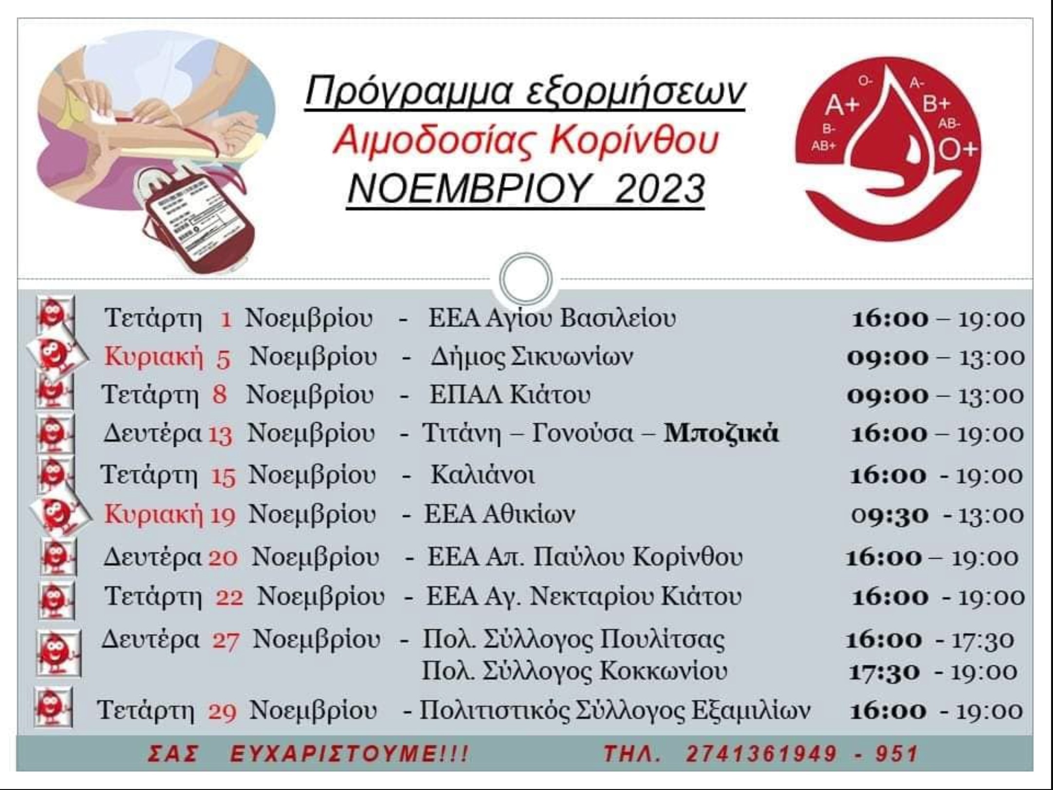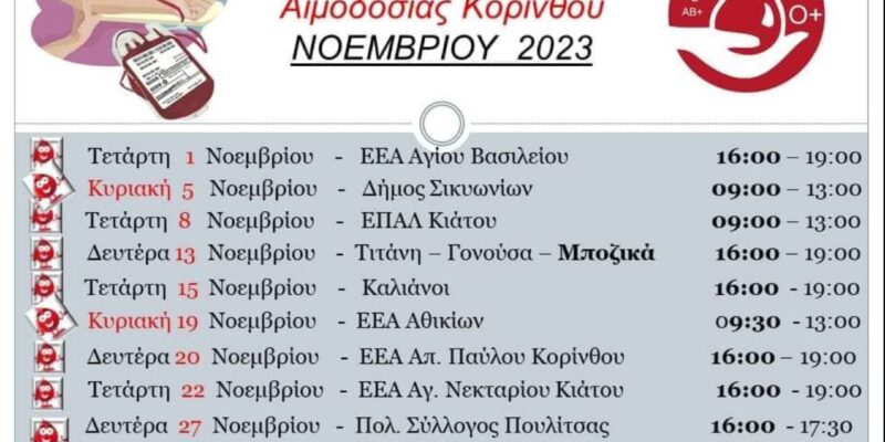 1_ΚΟΡΙΝΘΙΑ4_ΚΟΙΝΩΝΙΑΥΓΕΙΑ Τον Νοέμβριο η Κορινθία δίνει αίμα – Εσείς σε ποια αιμοδοσία θα δώσετε το παρόν; By SFEDONA 31/10/2023 ShareTweet 0