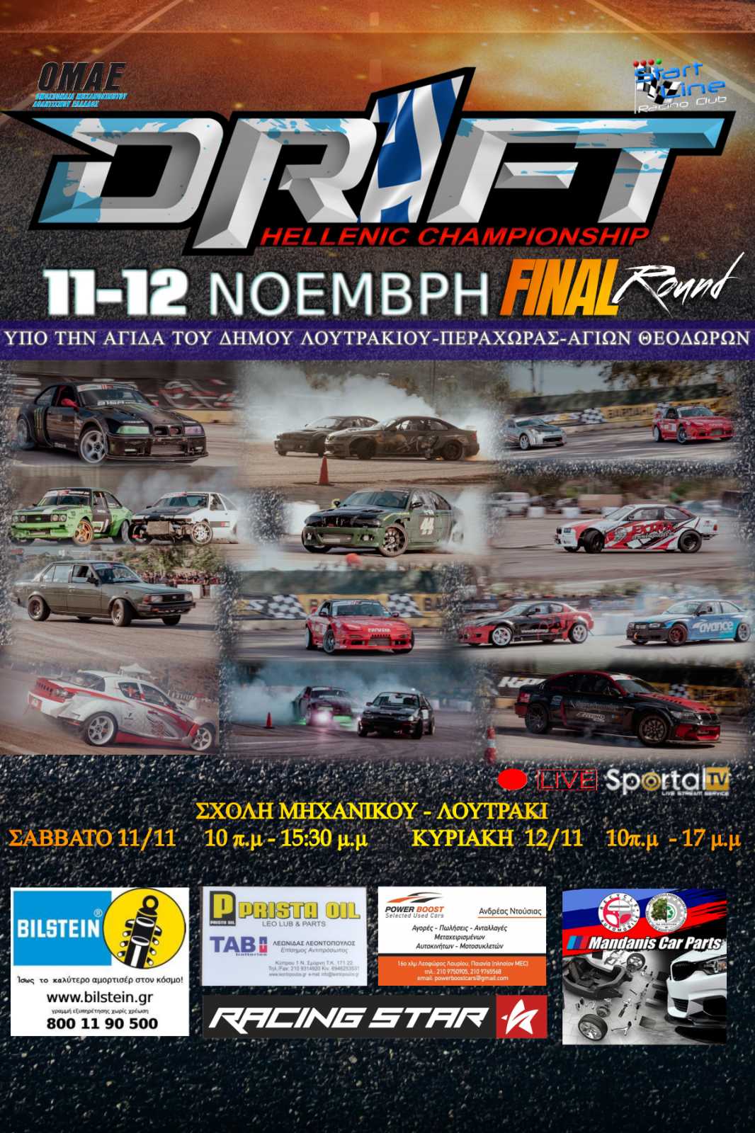Η αντίστροφη μέτρηση για τον τελευταίο γύρο του Πανελληνίου Πρωταθλήματος Drift, ο οποίος θα διεξαχθεί στις 11 και 12 Νοεμβρίου στη Σχολή Μηχανικού Λουτρακίου έχει ξεκινήσει, με την οργανωτική επιτροπή να βρίσκεται σε «πυρετό» προετοιμασιών.