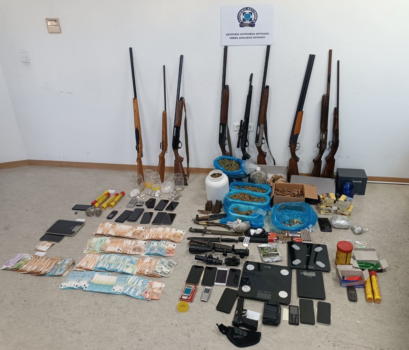 Εξάρθρωση εγκληματικών οργανώσεων διακίνησης ναρκωτικών – 14 συλλήψεις – κατάσχεση 7 κιλών κάνναβης και 100 γραμμαρίων κοκαΐνης – 10 όπλα – 65.000 ευρώ – 2 οχήματα