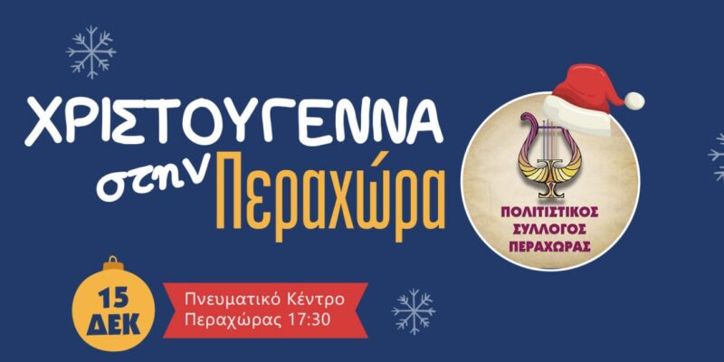 ΧΡΙΣΤΟΥΓΕΝΝΑ στην όμορφη Περαχώρα απο τον ΠΟΛΙΤΙΣΤΙΚΟ ΣΥΛΛΟΓΟ ΠΕΡΑΧΩΡΑΣ στις 15 & 16 Δεκεμβρίου στο Πνευματικό Κέντρο & ωρα 17:30