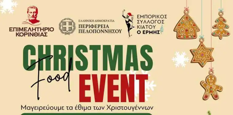 Το χριστουγεννιάτικο event γεύσεων του Επιμελητηρίου Κορινθίας σε συνεργασία με την Περιφέρεια Πελοποννήσου – Peloponnese Region και τον Εμπορικό Σύλλογο Κιάτου προσκαλεί όλους τους πολίτες την Κυριακή 17 Δεκεμβρίου στην πλατεία του Κιάτου, για να δοκιμάσουν γεύσεις και λιχουδιές με Κορινθιακά προϊόντα που θυμίζουν Χριστούγεννα.
