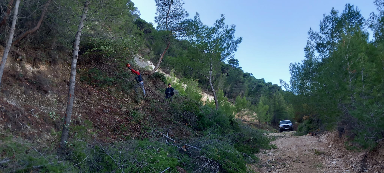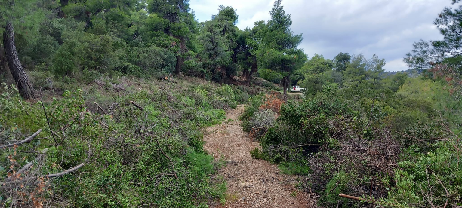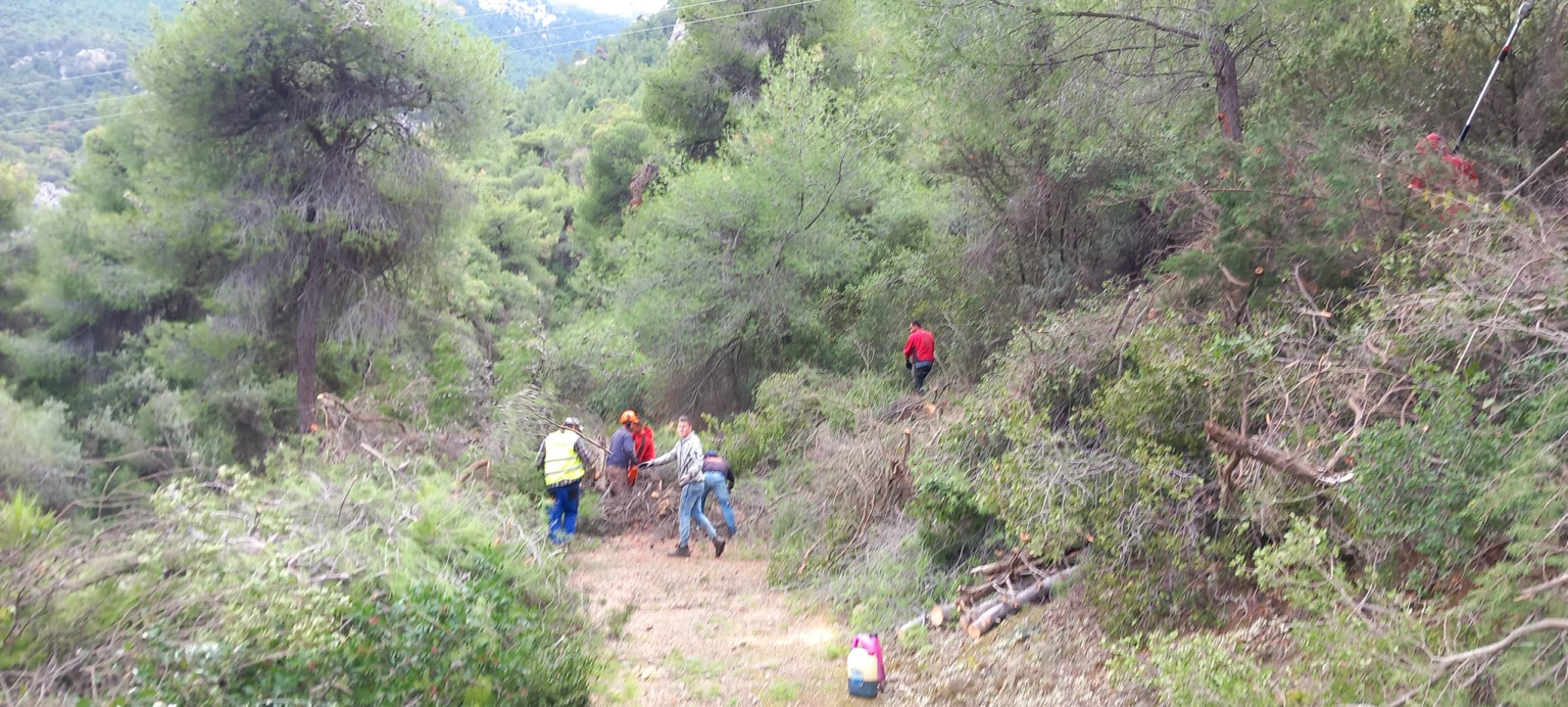 Ήδη έχει γίνει καθαρισμός στα πρανή του παλιού δρόμου Πίσια – Σχοίνου, συνεχίζετε ο θρυματισμός και στην συνέχεια απομάκρυνση των υλικών.