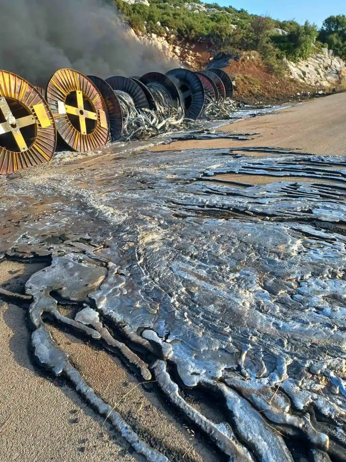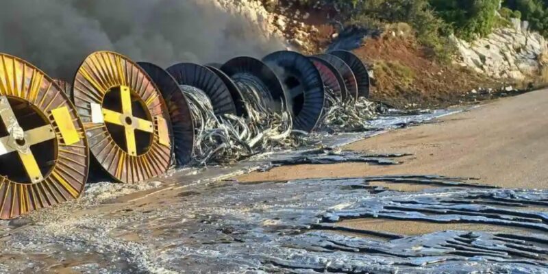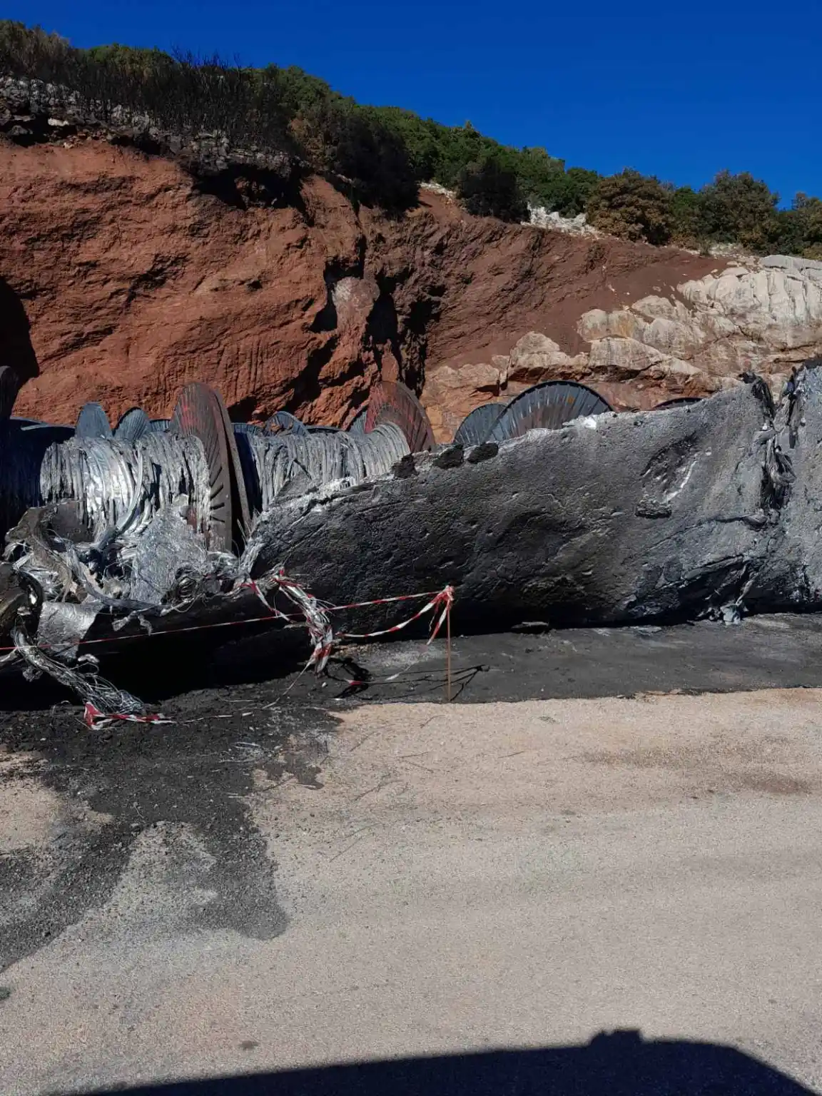 Ο κ. Μποζίκης έκανε ακόμα μία σοβαρή καταγγελία περιβαλλοντικού χαρακτήρα. Όπως έδειξε μέσα από φωτογραφίες δεν έχει υπάρξει καμία παρέμβαση, είτε από την Περιφέρεια, είτε από την εταιρεία που έχει αναλάβει να φτιάξει το αιολικό πάρκο στο Αγγελόκαστρο, για να καθαριστεί ο χώρος από τα καλώδια που κάηκαν στο τέλος Οκτωβρίου, στον δρόμο προς το χωριό.