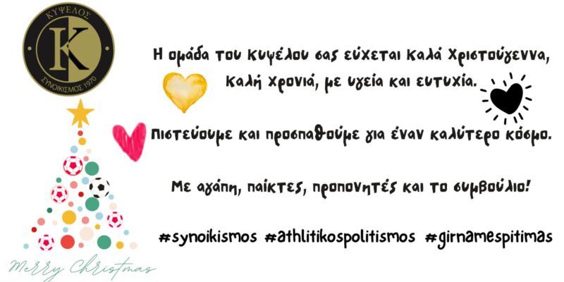 Και πάλι φέτος ο ΠΑΣ Κύψελος Κορίνθου έδωσε χαρά σε 20 οικογένειες της Κορίνθου με δωροεπιταγές των €50 από super market της πόλης, δίνοντας παράλληλα ευχές για τις γιορτές σε όλους. Είναι πράγματι μια πολύ αξιέπαινη πράξη που θα πρέπει να βρει μιμητές, γιατί, όπως τονίζει και η τοπική μας ομάδα ποδοσφαίρου: “Πρέπει να βοηθάμε τους συνανθρώπους μας ιδιαίτερα αυτές τις μέρες των Χριστουγέννων”. Συγχαρητήρια!