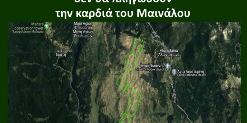 Ούτε 12 ούτε 9 ανεμογεννήτριες δεν θα πληγώσουν την καρδιά του Μαινάλου», τονίζει η ομάδα SOS Μαίναλο. Σε ανακοίνωσή της σημειώνει χαρακτηριστικά: