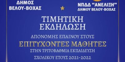 Ο Δήμος Βέλου Βόχας τιμά και βραβεύει τους μαθητές του Δήμου για την επιτυχία τους στις πανελλαδικές ...
