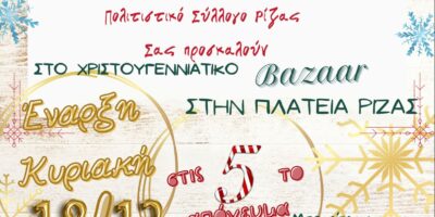 Οι μαθητές, οι γονείς και οι εκπαιδευτικοί του Δημοτικού-Νηπιαγωγείο Ρίζας σας προσκαλούν στο Χριστουγεννιάτικο Μπαζάρ που αρχίζει ...