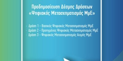 Η δέσμη Δράσεων κρατικών ενισχύσεων «Ψηφιακός Μετασχηματισμός ΜΜΕ» στο Πρόγραμμα «Ανταγωνιστικότητα» του ΕΣΠΑ 2021 – 2027, προϋπολογισμού 300.000.000 ευρώ, ...