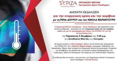 Εκδήλωση με Δούρου και Φαραντούρη στο Λουτράκι