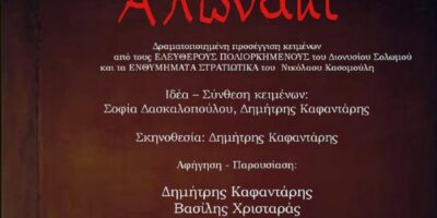Το ΚΕΝΤΡΟ ΠΟΛΙΤΙΣΜΟΥ ΑΘΛΗΤΙΣΜΟΥ & ΠΕΡΙΒΑΛΛΟΝΤΟΣ ΔΗΜΟΥ ΚΟΡΙΝΘΙΩΝ, σας προσκαλεί στο ΑΛΩΝΑΚΙ Πρόκειται για μια δραματοποιημένη προσέγγιση του ποιήματος του ...