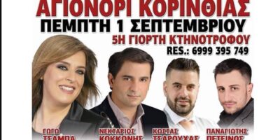 Η 5η γιορτή Κτηνοτρόφου θα πραγματοποιηθεί την Πέμπτη 1 Σεπτεμβρίου στο Αγιονόρι Κορινθίας, με ζωντανή μουσική και ...