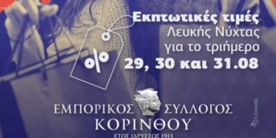 Σήμερα η γιορτή των εμπόρων της Κορίνθου με την Λευκή Νύχτα – Σπεύστε για να ψωνίσετε στις πιο χαμηλές τιμές