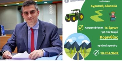 Χρίστος Δήμας: Χρηματοδότηση σχεδόν 11 εκατομμυρίων € για 16 έργα Αγροτικής οδοποιίας στην Κορινθία