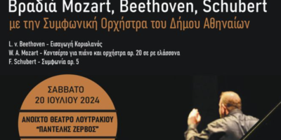Συναυλία-αφιέρωμα στους μεγάλους κλασικούς, Mozart, Beethoven, Schubert, με τη Συμφωνική Ορχήστρα του Δήμου Αθηναίων (20/7 Λουτράκι)
