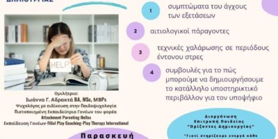 Eκδήλωση με Θέμα: «Άγχος εξετάσεων – Γονείς και διαχείριση»