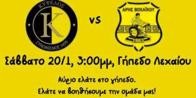 ΠΑΣ Κύψελος και “Άρης” Βοχαϊκού θα αναμετρηθούν στο γήπεδο του Λεχαίου By SFEDONA19/01/2024 1_ΚΟΡΙΝΘΙΑ